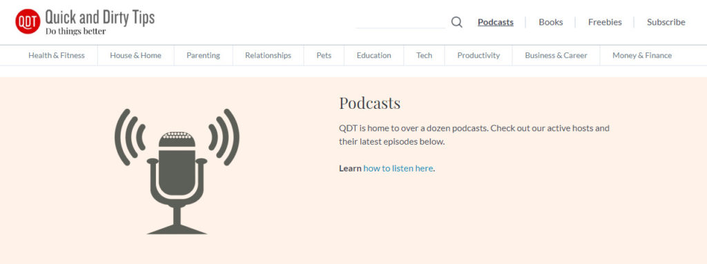 Only have time for a quickie? Quick and Dirty Tips is nothing less than a podcast offering lots of short and actionable advice when it comes to everyday life.