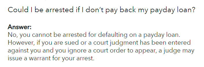 If you will hear about people in the news who have gone to jail stemming from debts owed, look for details closely. The truth is that it’s not that they didn’t pay the payday loans that landed them in jail, it’s that they defied a judge’s order to pay said debts. Do not mistake. There is a huge difference there.