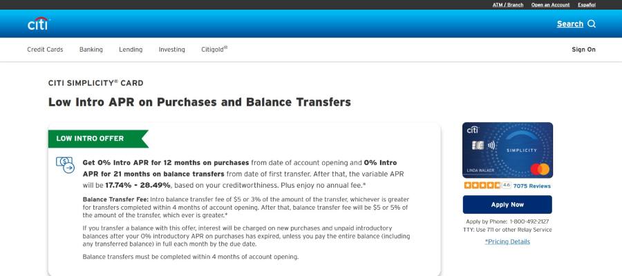 6. Citi Simplicity® Card